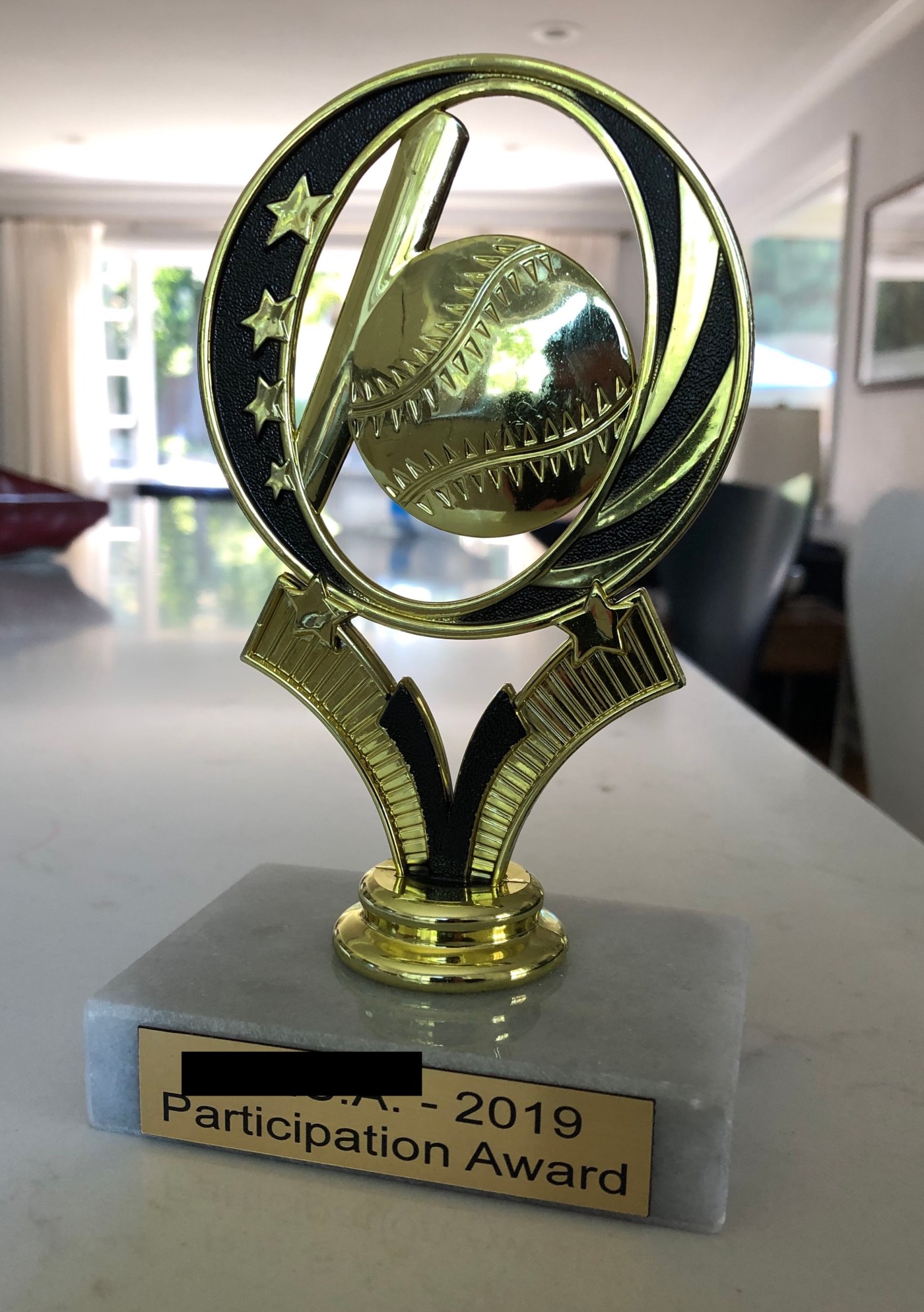 My son can’t play with the trophy, but it’s there, highlighting his participation in T-Ball. What message does it send when he picks it up or looks at it?