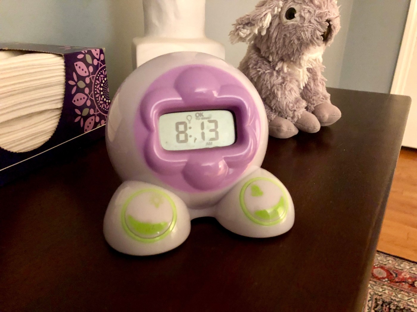 Friends of ours introduced the Mirari clock to us and noted how well it worked. The rule is simple – you’re not allowed to leave your bed until the light turns on. The plastic glows at the time you set and it indicates when junior is allowed to leave his bedroom. Any time before then, and it’s back to bed!