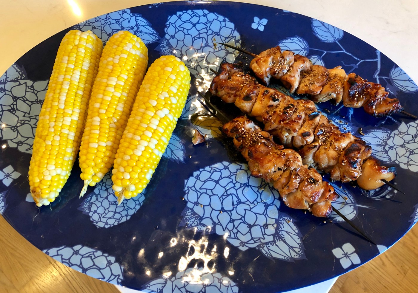 We opted to serve this dish with grilled corn, which is not the healthiest vegetable. Feel free to use another veggie if you’re following a strict diet plan like Isagenix. The other trick is to replace the chicken thighs with sliced chunks of chicken breast. The darker meat adds more flavor and fat, but I’m confident this dish would be fine using white chicken meat.