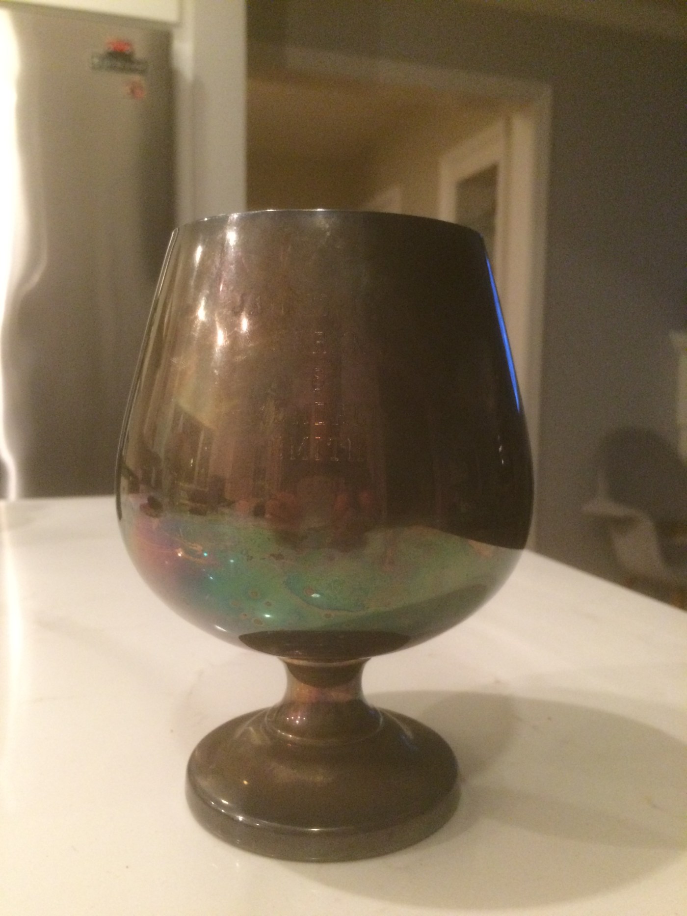 This led to a chalice, one blackened from what could have been 50+ years of tarnishing. The oxidization process was brutal, I could barely understand what I was looking at because… who owns a chalice? Did this item get handed down over the centuries? Did Charlemagne drink from this? Was it a prop in the movie, Indiana Jones and the Last Crusade? Seriously, where the hell did this piece come from and why did my mother have it?