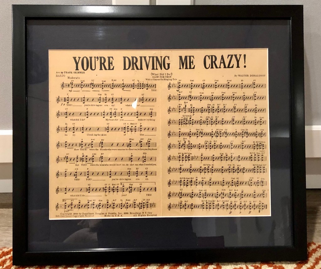 But on the bottom of that paper stack was my grandfather’s sheet music. Eureka! Discovered and saved, I promised to preserve these documents and his banjo forever.